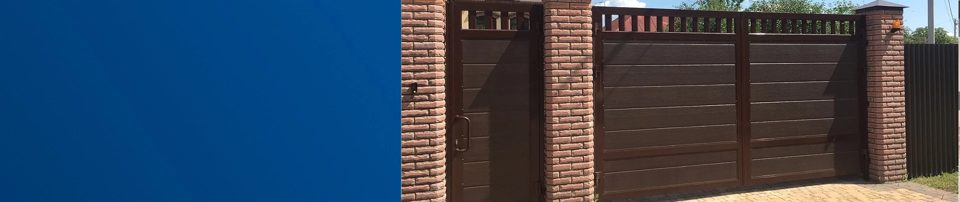 На нашем сайте официального дилера концерна DoorHan в Новокузнецке вы можете заказать уличные ворота с калиткой для частного дома, дачи, коттеджа или любой другой закрытой территории. Предлагаем следующие варианты наполнения полотна — профнастил, сэндвич-панели обычного типа и с алюминиевым профилем. Можно выбрать любой цвет полотна из палитры RAL. Большое разнообразие расцветок позволит легко подобрать красивое дополнение к декору участка.